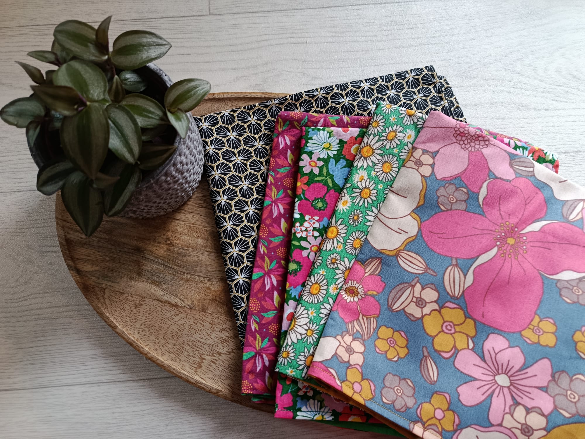| Motifs sacs à tarte | Citrons, Cupcakes, Feuilles bleues et marron, Feuilles fond moutarde, Fleuri fond marine, Fleurs fond rose, Fleurs fond vert, Fleurs lie de vin/ mauve, Floral bleu, Floral rouge, Grosses fleurs, Marguerites fond vert, Olivier mauve, Oliviers roses, Pastèques, Petites fleurs bleues, Riad noir, Vichy bleu, Vichy rose, Vichy rouge |